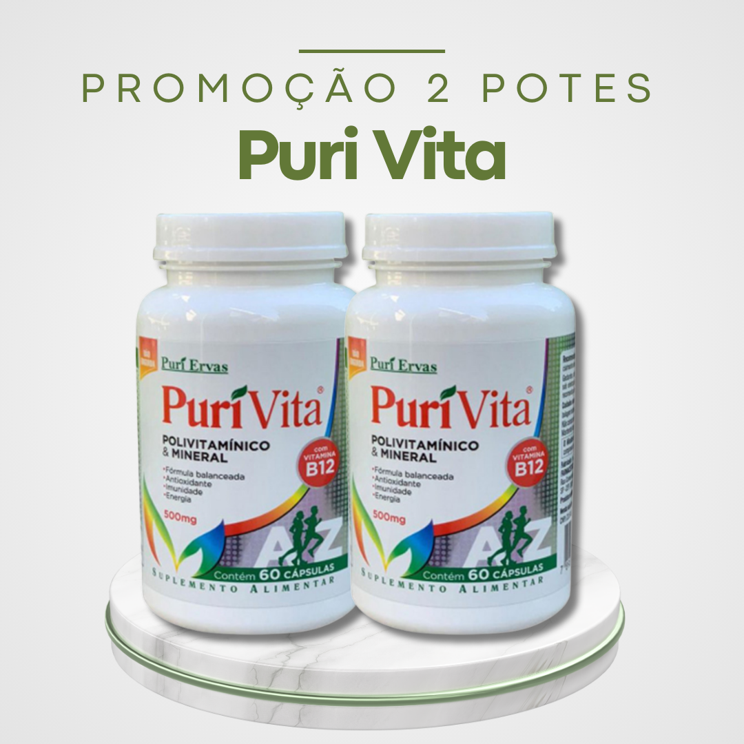 Promoção 2 Potes Puri Vita – Polivitamínico e Mineral que reforça a imunidade, proporcionando mais disposição e energia para o seu dia a dia.